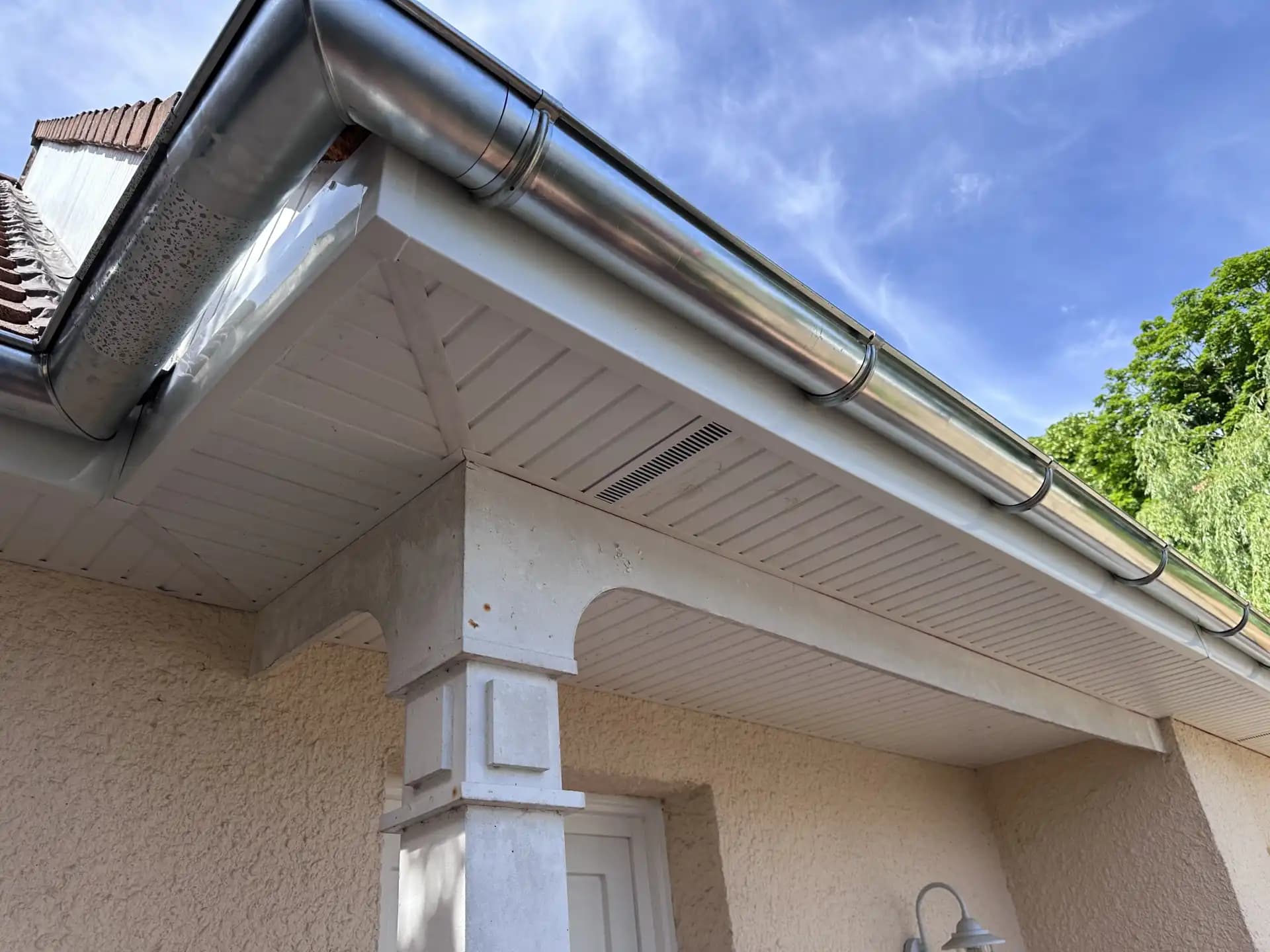 Diagnostic et réparation de fuites, remplacement de portions de gouttières abîmées, ressoudure de joints et nettoyage complet des ouvrages de zinguerie existants.